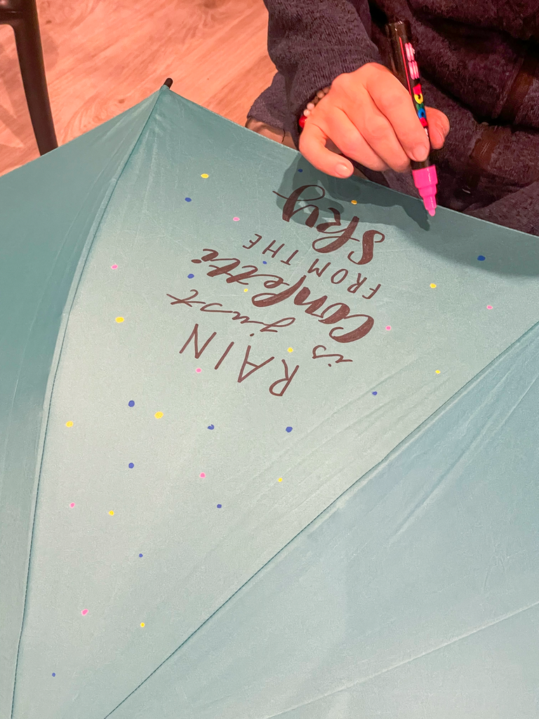 Handlettering-Style machen aus einem ganz normalen Schirm ein echtes Kunstwerk