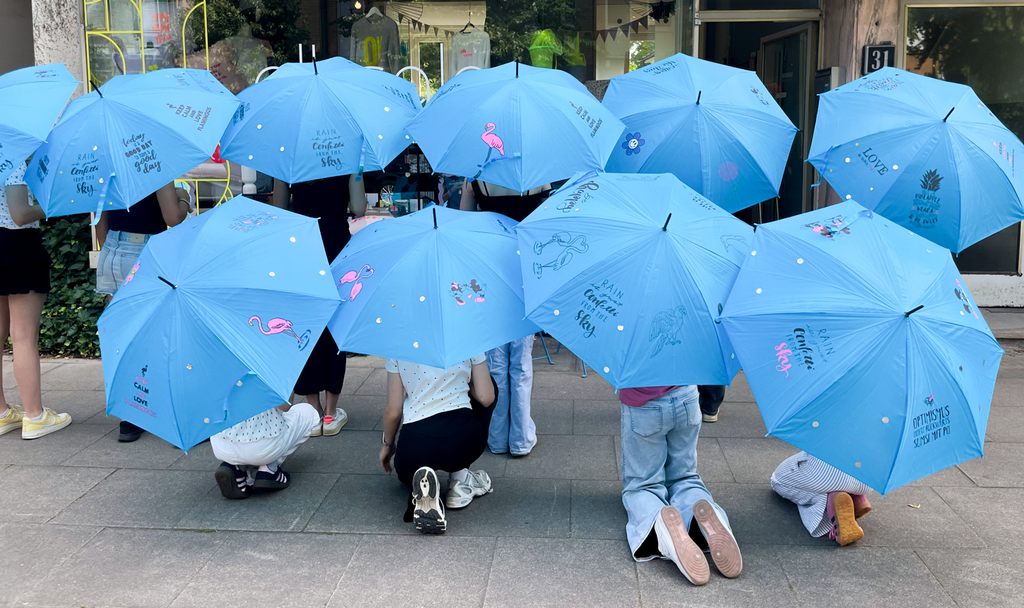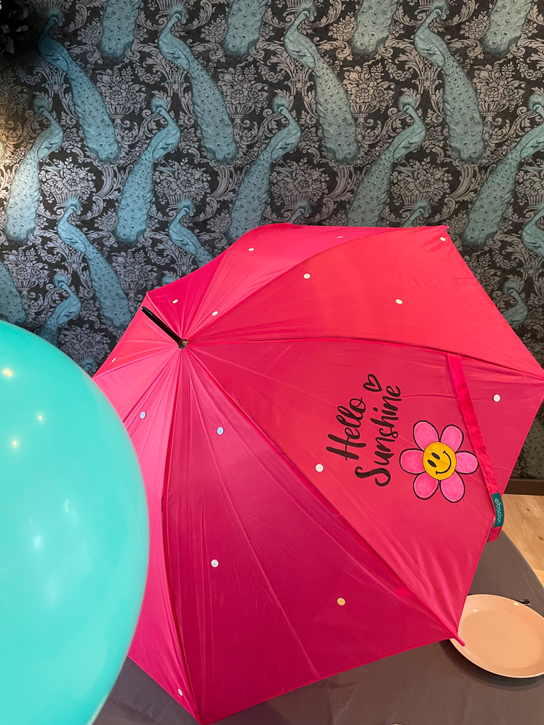 Mal etwas wirklich Besonderes: auf Papier malen kann ja jede/r! Das Bemalen eines Regenschirms ist eine ganz neue Erfahrung und gleichzeitig eine tolle Erinnerung an Dein Kreativ-Event, die im Alltag wirklich leicht seinen Platz findet und gute Laune macht.